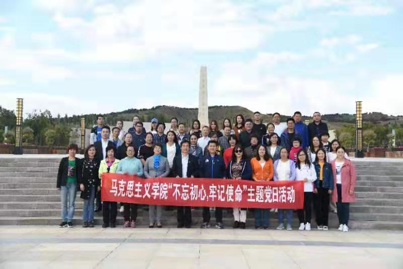按照taptap点点官网“不忘初心、牢记使命”主题教育在全校开展的部署要求,进一步巩固主题教育成果,激励思政课教师、党员、干部时刻“守初心、砺修养、担使命、勇前行”,9月22日下午,taptap点点官网党总支书记贺瑞、院长李春晖带领全院教职工和全体研究生党员赴大青山红色文化公园开展“不忘初心、牢记使命”主题党日活动,进行现场学习。