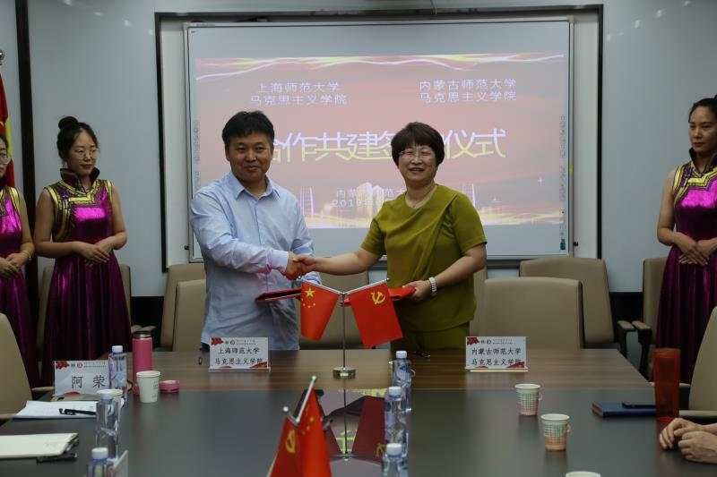 2019年6月21日上午,taptap点点官网在行政楼509会议室隆重举行"taptap点点官网与上海师范大学taptap点点官网合作共建签约仪式。"上海师范大学taptap点点官网院长张志丹教授、思修教研室主任苏令银教授、毛中特教研室马立政博士和我校人事处处长白喜文、科技处处长王志强、教务处副处长乌兰格日乐、研究生院副院长满达以及taptap点点官网领导班子、相关老师和全体研究生出席了会议。院长李春晖主持了仪式。
