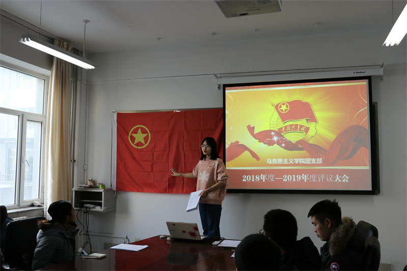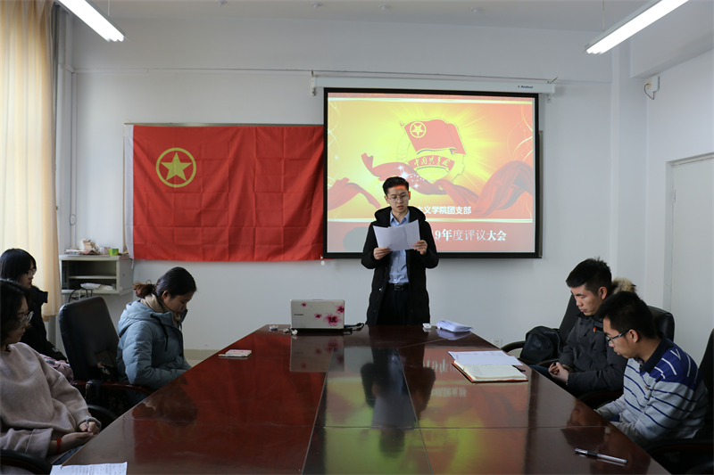 会议上,团总支书记范晓刚老师发言并宣读教育评议内容。他强调,要加强青年团员的思想政治建设,青年团员应当牢固树立“四个意识”,坚持“马院学马”、“马院讲马”,将马克思主义内化于心,外化于行。