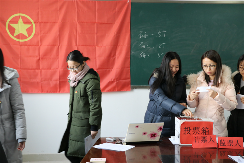 同时,团支部书记宣读了教育评议标准和评议过程。首先,团员自我评价、然后组织评议,最后无记名投票。经过评议,认定王振栋等10名同学在2018年度团员评议中获得优秀,认定罗琛等23名同学为合格。