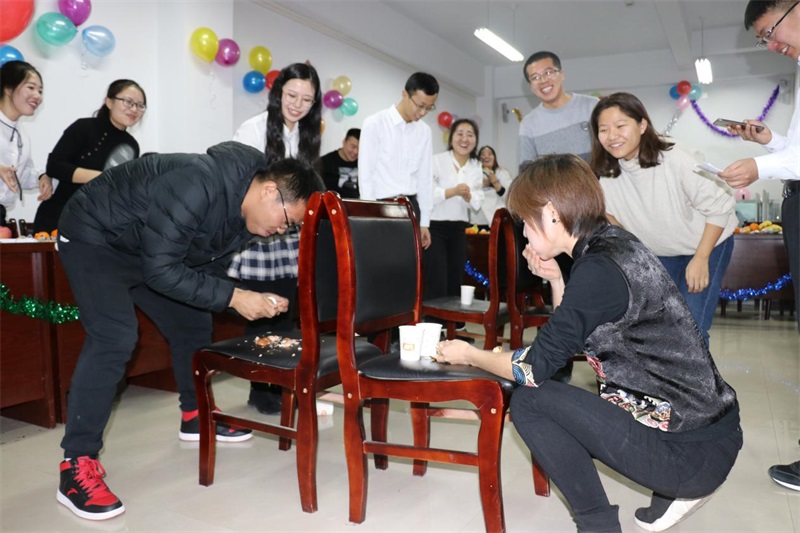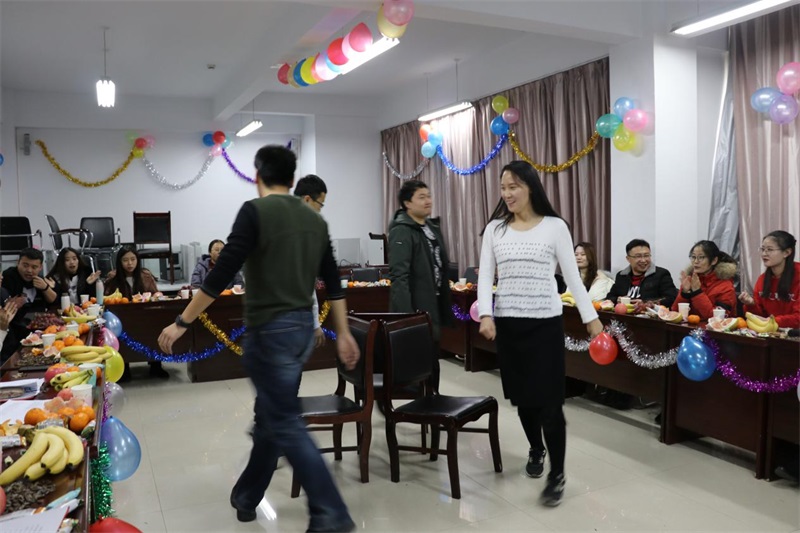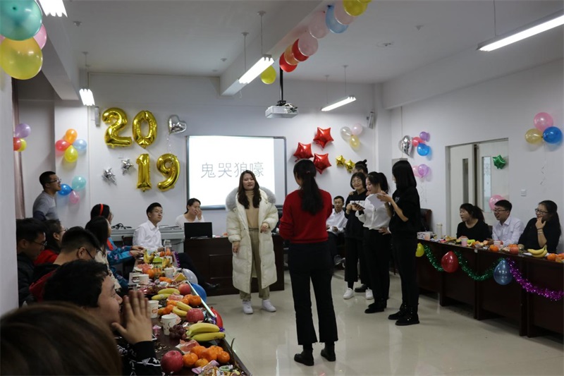精彩的舞蹈过后节目展示与游戏环节交替进行,抢凳子,猜歌词,你划我猜,计时吃东西,老师们也参与其中,与同学们一起辞旧迎新,现场其乐融融,欢声笑语此起彼伏。
