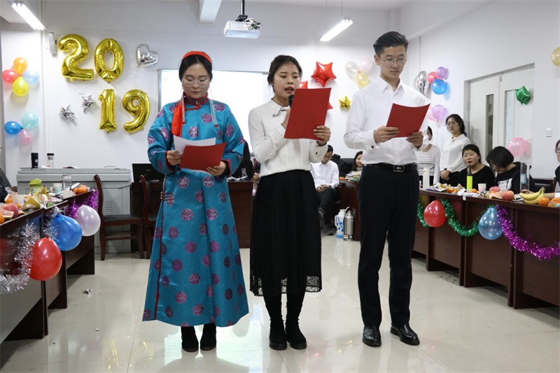 岁末将至,taptap点点官网师生欢聚一堂,于2018年12月28日在盛乐校区学院楼B区202教室举办taptap点点官网2019年新年茶话会。taptap点点官网党总支副书记、副院长阿荣老师、taptap点点官网团总支书记范晓刚老师及全体同学参与了本次活动。