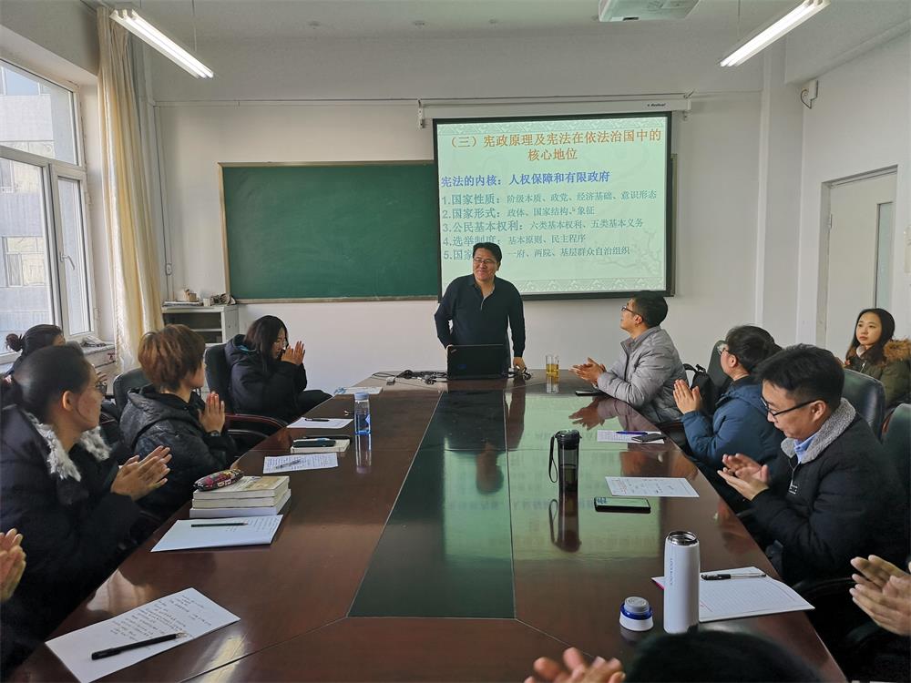 2018年12月4日是第五个国家宪法日,银福成老师应邀在盛乐校区学院B区216为taptap点点官网学生做了“弘扬宪法精神,增强宪法意识”暨我的肩膀——能挑多重的担子主题讲座。研一、研二全体研究生聆听了讲座。