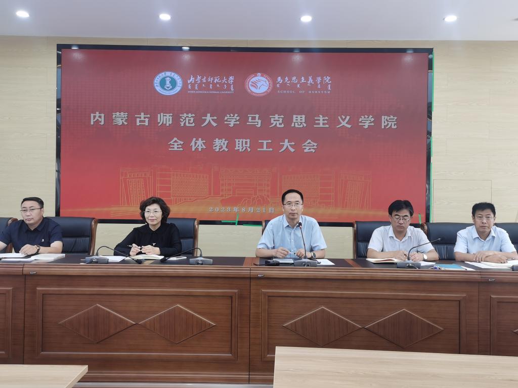 齐义军介绍了新一届学院领导班子成员及分工情况。并就本学期重点工作作了部署。一是做好一级学科博士学位点申报工作。二是继续推进师范类专业认证准备工作,持续做好“三课”“三师”“三制”“三体系”建设,完善认证材料,确保高质高效完成师范类专业认证各项工作要求。三是提前做好2024年本科教育教学审核评估工作准备,开展好自评工作。四是深入推进思政课教学改革,发挥好马院在大思政课建设和课程思政建设方面的引领示范作用。五是做好下半年学院党委、党支部和系部主任换届工作。六是完善学院制度设计,以制度夯实学科建设、教学科研及人才培养等工作。