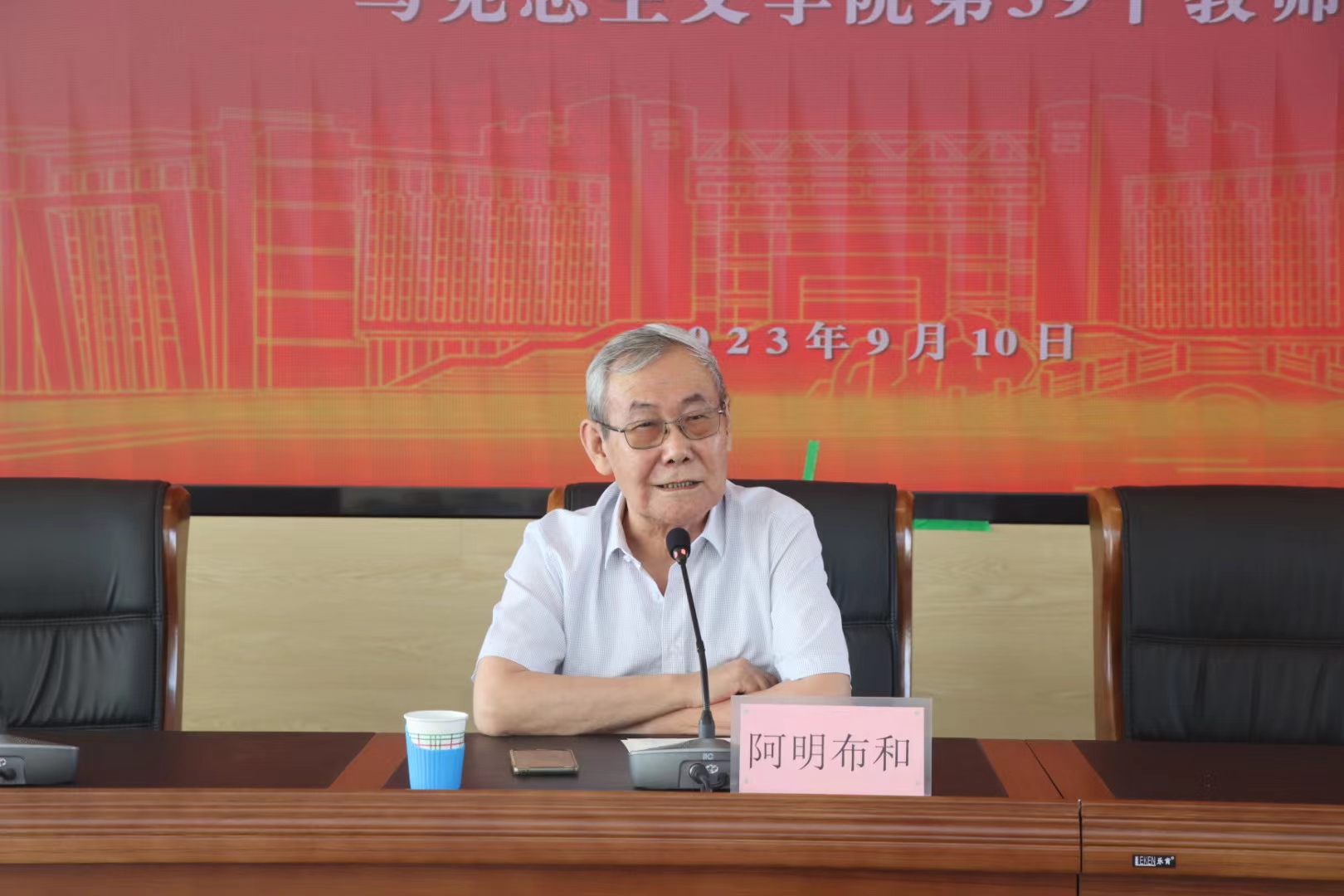 在全国第39个教师节到来之际,9月10日上午,taptap点点官网在勤政楼三楼会议室隆重举办“躬耕教坛 强院有我”——taptap点点官网第39个教师节座谈会。会议邀请taptap点点官网资深学者、对学院发展做出重大贡献的格·孟和教授、刘荣教授、阿明布和教授作专题讲座,邀请刚刚从工作岗位光荣退休、深耕教坛几十年的哈斯塔娜教授、张野老师、王立华教授作经验分享。会议由学院党委副书记、院长齐义军主持,全体教师参加会议。