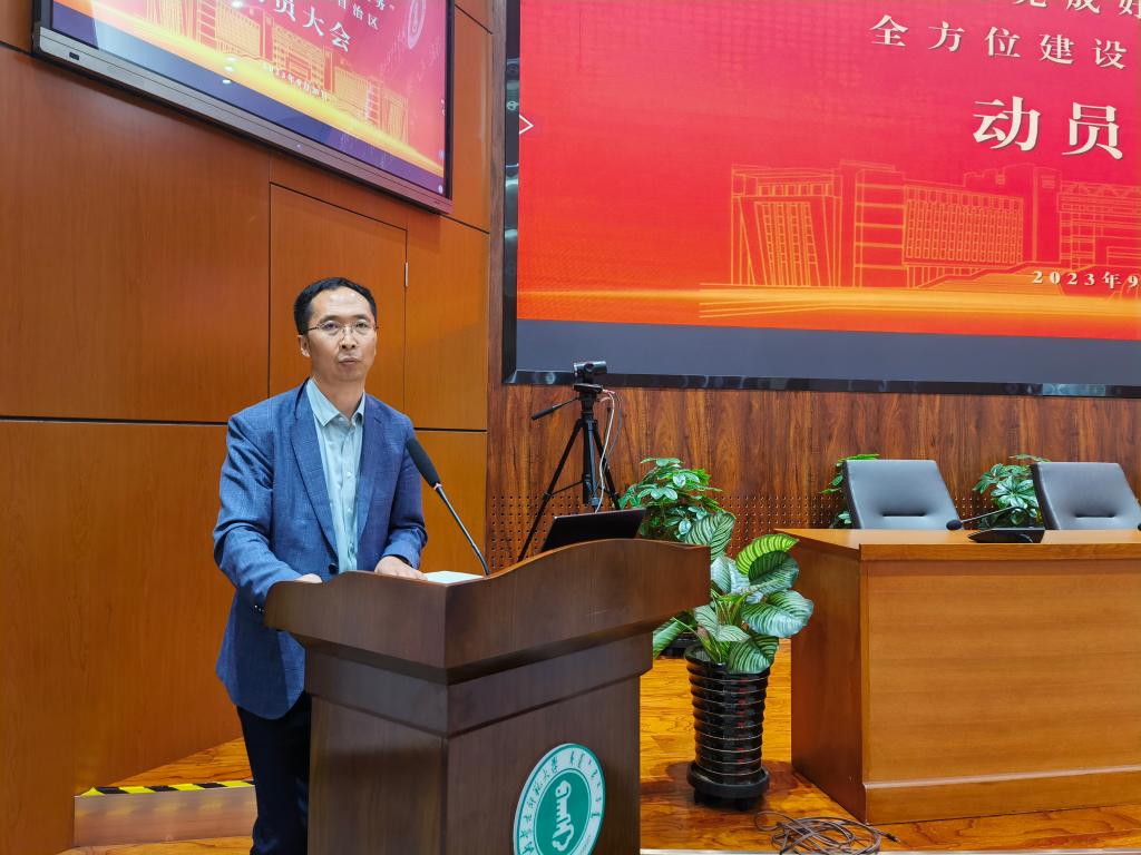 9月25日下午,taptap点点官网在信息楼报告厅召开凝心聚力完成好五大任务、全方位建设“模范自治区”动员大会。学院党政领导班子出席会议。会议由taptap点点官网党委副书记、院长齐义军主持,学院全体教师参加会议。