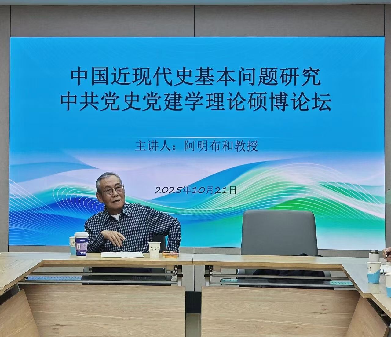 2025年10月21日下午,taptap点点官网中国近现代史基本问题研究与中共党史党建学理论学位点“硕博论坛”在学术交流中心2号会议室举办。taptap点点官网原政治经济系主任阿明布和教授以“如何学习中共党史”为主题作了专题讲座。taptap点点官网党委书记王丹、副院长刘爱华、钢特木尔参加会议,中国近现代史基本问题研究与中共党史党建学理论专业研究生、思政系青年教师等60多人现场聆听。博士生导师赵图雅教授主持会议。