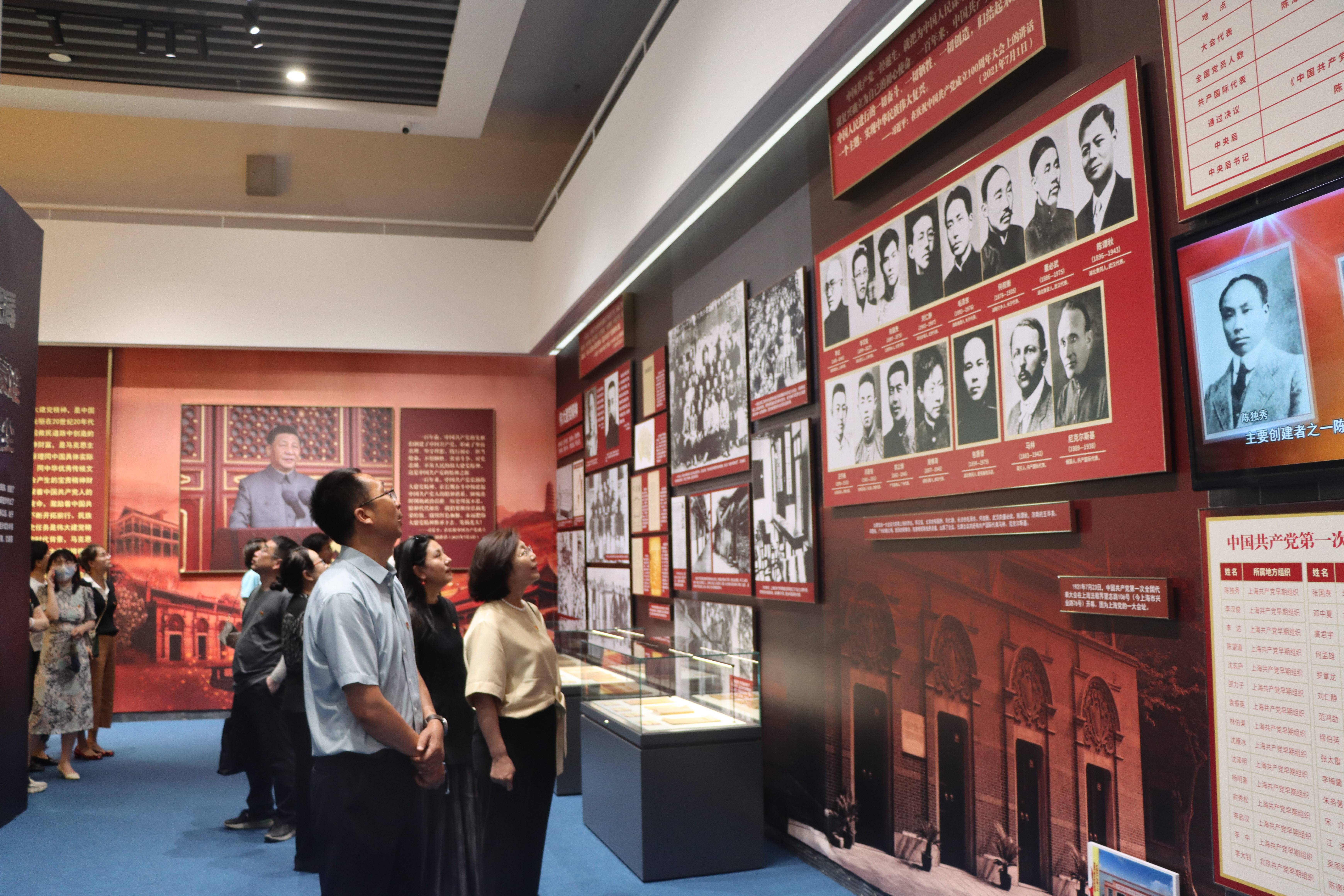 全体师生党员重点参观了“伟大精神引领伟大事业——中国共产党人精神谱系”主题展,以首批纳入中国共产党人精神谱系的46种精神为串联,全面生动展现伟大建党精神形成的时代背景、理论来源和实践基础,呈现中国共产党在不同历史时期铸就的一系列伟大精神的丰富内涵和精神实质,展示在伟大建党精神引领下党和人民的百年奋斗历程。师生不时驻足观看,相互交流,通过一张张历史图片、一件件实物展品以及多元化的音视频历史再现,深切感受到中国共产党不可战胜的强大精神力量。