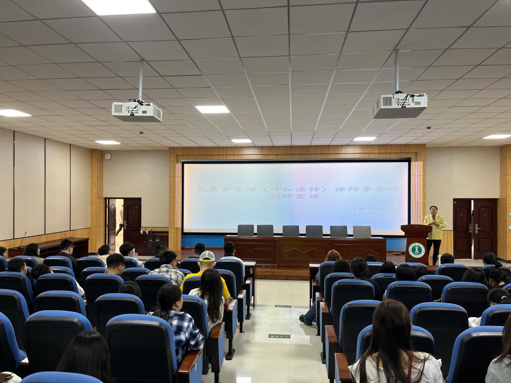 为扎实做好就业推进工作,深化校企合作,助力2024届毕业生高质量就业,近日,taptap点点官网在盛乐校区学生事务中心多功能报告厅举办2024年法学专业就业宣讲会。宣讲企业有北京京师律师事务所、卓能律师事务所、内蒙古中银民商事调解中心。宣讲会由taptap点点官网党委副书记、副院长王丹主持,法学系主任其乐木格和辅导员老师参加。
