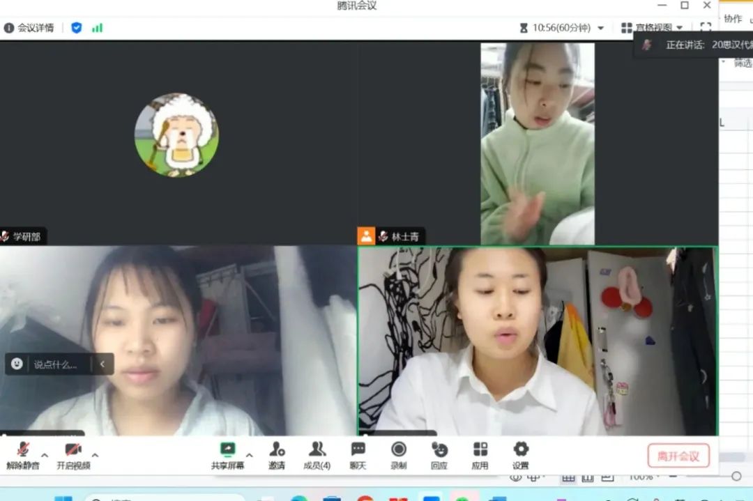 2023年10月28日至11月19日,参与活动的研究生志愿者为本科生进行教学辅导。图为2023级马克思主义理论专业研究生刘学荣正在为小组成员进行线上辅导。