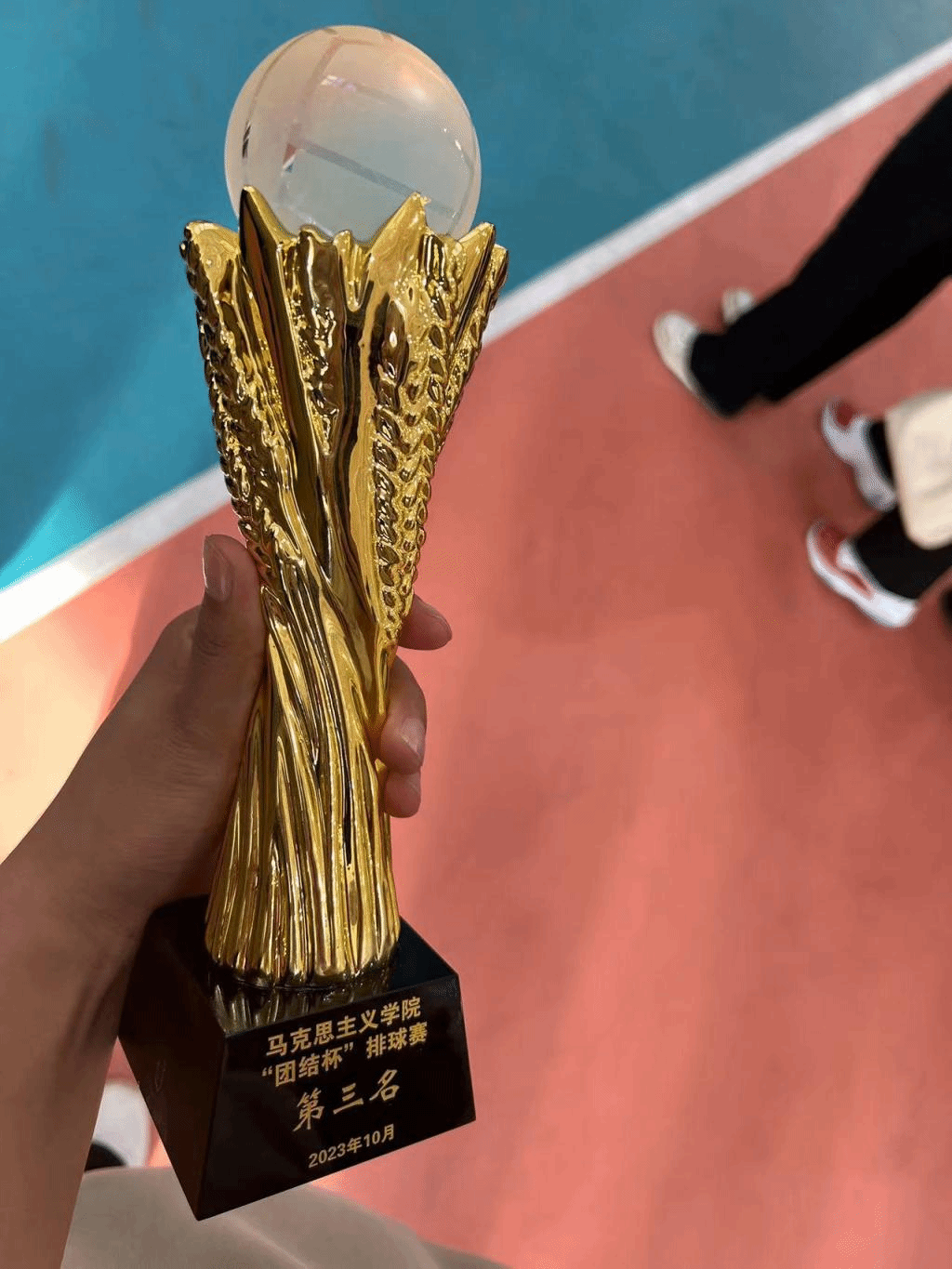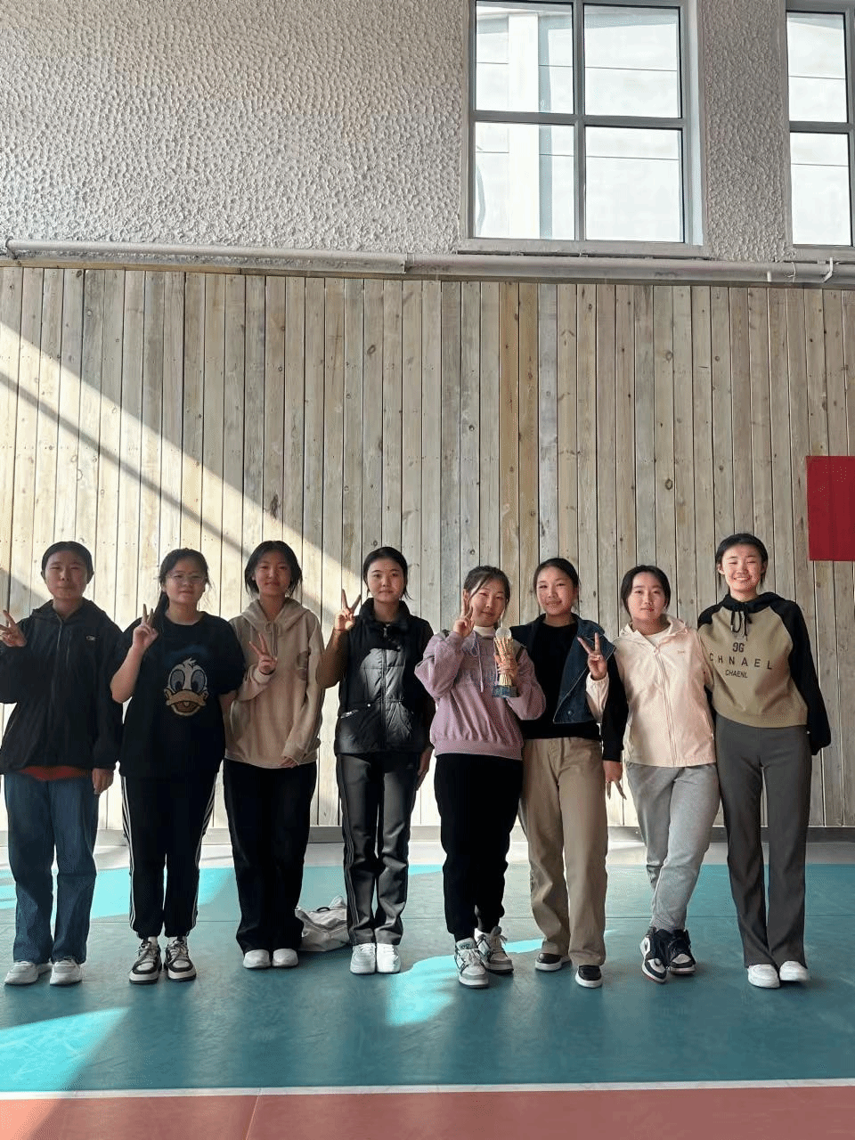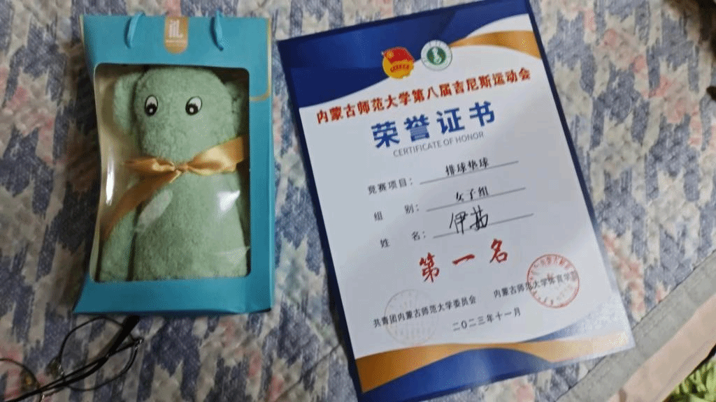 我班陈晶晶,常莹莹,伊茹,伊拉贡,杨有丽,胡超然,娜仁珠拉,萨其日娜等八位同学,代表班级参加了2023--2024年taptap点点官网团结杯排球比赛,经过激烈的角逐,获得了第三名,替班级获得了荣誉。