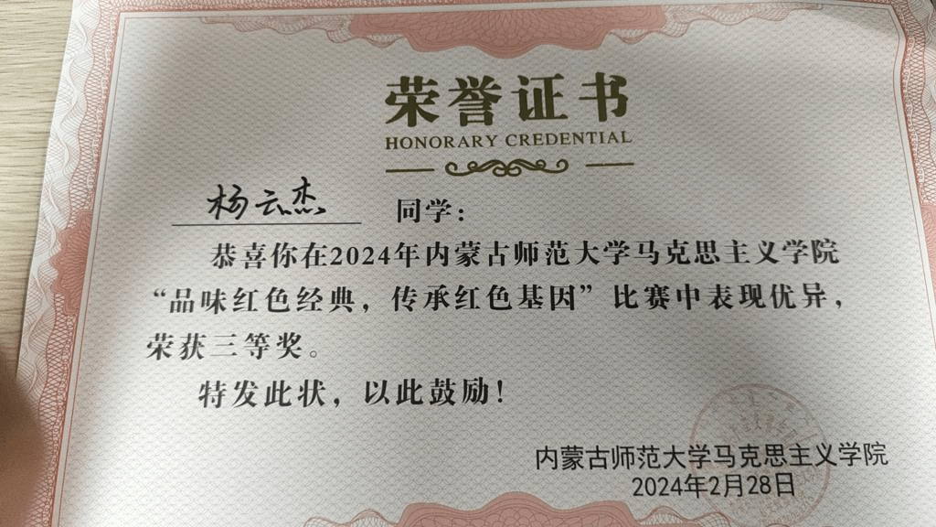 我班杨云杰同学在taptap点点官网“品味红色经典,传承红色基因”比赛中获得三等奖,杨绍杭同学获得二等奖。